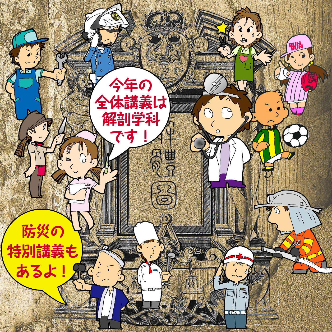 毎年多数の受講申込みがある子ども医学部は、久留米市内の医師をはじめとする多くの医療関係者の無償協力を得て、グランドホールでの基調講義、そして多数の診療科の開設を予定しています。